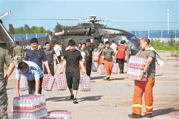 空投物资给当地群众带来了很大的精神鼓舞。“感谢人民子弟兵,打开了空中救援通道,给大家送来希望!”负责协助空投的辉县洪洲乡党委书记曹启进说,接到应急部门的通知后,乡里的党员干部、乡镇企业职工积极响应,共有100多人赶来协助将各地援助物资转运到直升机上,再由直升机进行精准投送。