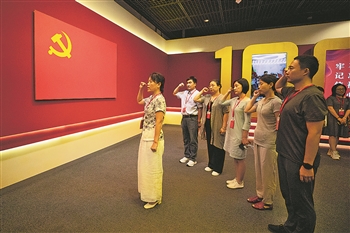 7月23日下午,劳模们参观首都博物馆,重温入党誓词。