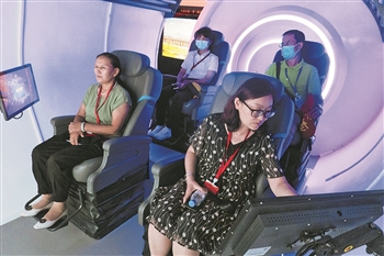 7月25日下午,劳模们参观中国铁路工程建设展,并在中国首台土压平衡式盾构机体验舱内体验。