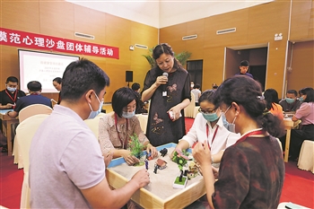 7月24日下午,劳模们正在体验团体沙盘心理辅导。
