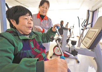 近日,河北省唐山市路北区煤研分院社区幸福家园养老服务中心工作人员在指导老人使用健身器材。唐山深化与京津在医疗卫生、教育体育、健康养老等领域的对接合作,推动城市承载能力和品质内涵“双提升”。新华社记者 杨世尧 摄
