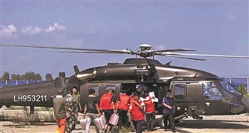 受强降雨影响,河南新乡辉县部分村庄被洪水围困。7月23日起,第83集团军某空中突击旅3架直-20型直升机飞赴辉县洪州乡、峪河镇等地,执行空中勘察和空投救援物资、器材任务。跟随《工人日报》记者镜头,全程见证救援物资投放过程。