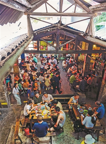 在重庆市九龙坡区黄桷坪街道一栋旧楼后的小巷里,藏着一个充满年代感的老式茶馆——交通茶馆。茶馆建于1987年,由原黄桷坪交通运输有限公司食堂改造而成,并最大程度地保留了二十世纪七八十年代的茶馆的经营风格。随着城市旅游的快速发展,交通茶馆逐渐成为重庆的热门文化地标,慕名而来的游客在这里点上一杯盖碗茶,感受老重庆市井的欢愉。新华社记者 刘潺 摄