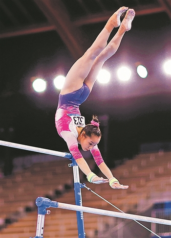 7月29日,东京奥运会体操女子个人全能决赛中,中国选手唐茜靖获得第七名。新华社记者 王丽莉 摄
