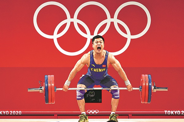 7月31日,在东京奥运会举重男子81公斤级决赛中,37岁的中国选手吕小军以374公斤的总成绩夺冠。本报特派记者 杨登峰 摄影报道