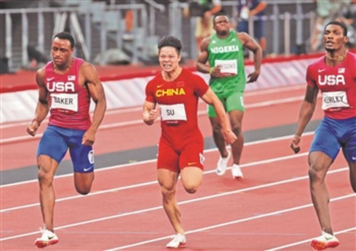 中国飞人苏炳添在男子百米飞人大战中夺得第六,半决赛9秒83刷新亚洲纪录,创造了中国人在奥运百米项目中的历史。