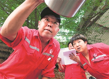 近日,河南油田物资供销中心南阳仓库开展技术比武竞赛,参赛选手贾添泰(左一)正在进行螺纹检测仪器测量比赛。比武共分套管内外螺纹丝扣清洗和螺纹检测仪器测量两个项目,旨在提升职工技术技能水平,形成比学争优的良好氛围。本报通讯员 谢玉文 摄