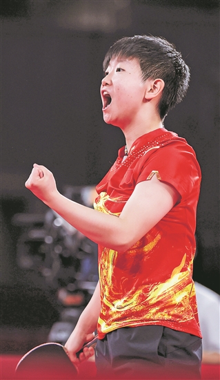 孙颖莎在比赛中庆祝。本报特派记者杨登峰 摄