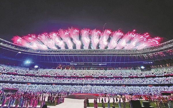 图为闭幕式上的焰火表演。本报特派记者 杨登峰 摄