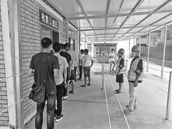 湖北省荆州市发生疫情后,多次开展全民核酸检测。图为中国一冶公安项目部第一时间支援核酸检测工作,一线农民工们在做完两轮核酸检测后,积极参加志愿服务。