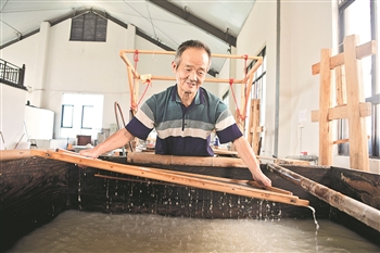 铅山连四纸是中国手工竹纸中的杰出代表,首批国家级非物质文化遗产。因其从砍竹到成品生产周期长达一年,需经沤、蒸、春、抄、焙等72道工序,造就了其洁白莹辉、细嫩坚、防虫耐热、久不变色的品质。其手工制作技艺被称为中国传统手工造纸技术发展至高峰时的“活化石”见证,具有相当的历史和科学研究价值。丁铭华 摄/人民图片