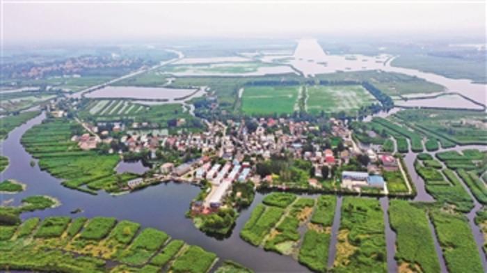 图为白洋淀内的村庄(8月14日摄,无人机照片)。