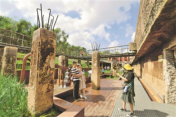 8月15日,吉林省长春市,市民在老净水厂改造的水文化生态园(一期)游玩。