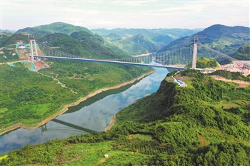 当日,随着最后一节段钢桁梁吊装到位,贵州瓮(瓮安)开(开阳)高速开州湖特大桥合龙。该桥全长约1257米,主跨约1100米,是瓮开高速的控制性工程。新华社记者 刘续 摄