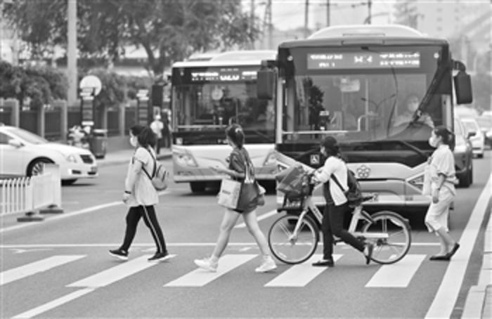 8月16日,北京市丰台区,行人通过印有“礼让行人”标志的人行道。8月12日,北京市交安联办、首都文明办、市交通委、市公安交通管理局联合举行启动仪式,标志着北京“文明驾车、礼让行人”专项行动正式开始。 易海菲 摄/视觉中国