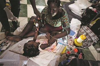 8月18日,在海地震中附近的莱凯的一家医院,一名儿童接受治疗。