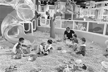 8月21日,北京市丰台区一家儿童乐园内,孩子们正在玩乐,享受假期时光。近年来,儿童消费在家庭支出的占比不断增加,“儿童经济”日趋火热,儿童乐园受到众多商家热捧。与此同时,受互联网购物等多方因素影响,城市购物中心等商业综合体正面临转型发展,急需通过高质量的线下消费提升人气。儿童乐园灵活的经营方式、强大的引流能力和广阔的消费前景,成为了购物中心新场景。