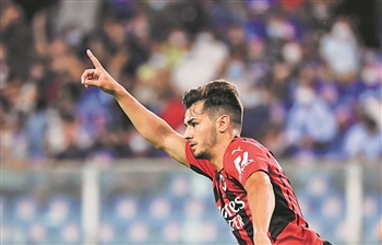 8月23日,AC米兰队球员迪亚斯进球后庆祝。当日,在2021-2022赛季意大利足球甲级联赛首轮比赛中,AC米兰队客场以1比0战胜桑普多利亚队。