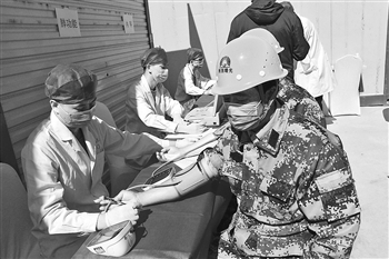 近年来,中建八局西北公司工会竭力打造集“生活互助服务站、权益维护咨询站、心理疏导减压站、学习培训加油站、文化体育活动及身体健康检查站”为一体的一站式服务平台——“项目工会工作站”,全方位关爱农民工,增强农民工获得感幸福感安全感。图为企业工会协调青海省康复医院为农民工开展免费健康体检活动。本报记者 邢生祥 摄