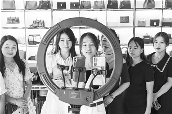 8月25日,湖南省永州市蓝山县皮具城点精电商培训基地,学员们正在进行皮具直播带货等技能培训。今年,该县通过技能培训,共帮助2000余名农村劳动力重新走上就业之路。近年来,该县依托皮具产业链条优势和乡村农业产业优势,致力打通线下生产与线上销售衔接点,使越来越多的新型农民利用互联网致力,实现家门口乡村振兴梦。