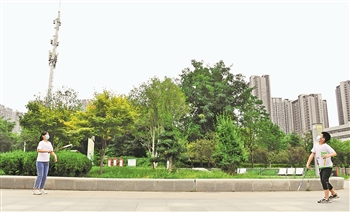 图为8月28日,市民在郑州市二七区京广路街道的一处公园内打羽毛球。新华社记者 许雅楠 摄