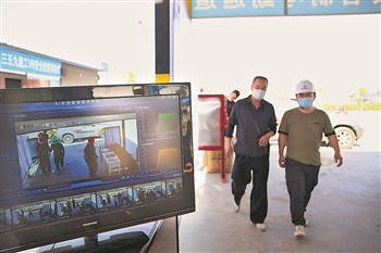8月30日,在新疆塔建三五九建工公司承建阿拉尔公租房项目,两名工作人员正在进行AI安全着装管理系统测试。该系统可对未按要求佩戴安全帽等安全着装的行为予以警告,为项目安全生产提供有力保障。本报通讯员 官跃志 尹阳阳 摄