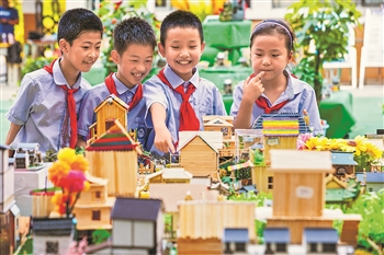 8月30日,浙江省湖州市长兴县第一小学举办“童心匠作 幸福民居”项目化学习成果展,集中展示学生们手工制作的5000多套“幸福民居”作品。学生们通过查找中国民居文化资料,实地走进民居建筑,将创新、科技、建筑、生活等元素融合,自主设计并制作“幸福民居”,从中感受“家文化”和中国传统民居的魅力。许斌华 摄/人民图片