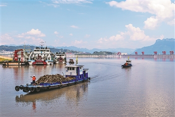 8月31日,清漂工人将装满漂浮物的船舶开往专用码头进行转运,以便进行下一步集中处理。