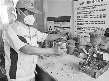 手举一把喷枪,面对车门板不断调整喷枪喷射的角度、距离、速度,经验老到的兰家洋操作精准,他喷的最薄的一道漆面仅10到15微米,厚度不到一根头发丝直径的七分之一。为磨损的汽车门板“平复伤痕”,兰家洋要经过大大小小14道工序,他因此被誉为“汽车的美容师”。