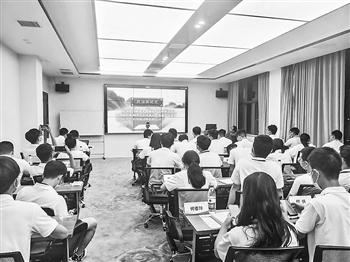 持续深化法治进公司,系好青年员工第一颗“法治扣子”。中交天津公司在组织开展的“美好生活 民法典相伴”宣传活动中,将民法典学习纳入新员工入职培训教育,提升青年维护自身合法权益的意识和能力。图为新员工在入职培训教育现场,学习民法典相关知识。 李敏 摄