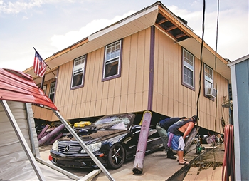 美国路易斯安那州布尔格,居民查看被飓风毁坏的房屋设施。四级飓风“艾达”29日中午登陆美国路易斯安那州后造成灾害,已造成至少一人死亡。新华社发 (尼克·瓦格纳 摄)