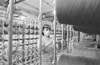8月31日,邢台市南和区和阳镇杨李召村农民在一家纺线加工厂内工作。