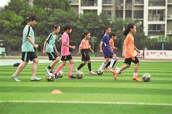 9月2日,在合肥市师范附属第三小学,女子足球社团的同学们在训练。近日,安徽省下发《关于进一步规范中小学生课后服务工作的通知》,义务教育学校每周5天都要开展课后服务,每天至少2小时。新华社记者 周牧 摄