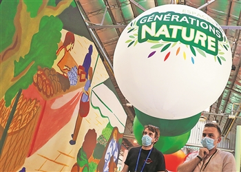 9月4日,人们在法国马赛举办的第七届世界自然保护大会上参观讨论。新华社记者 高静 摄