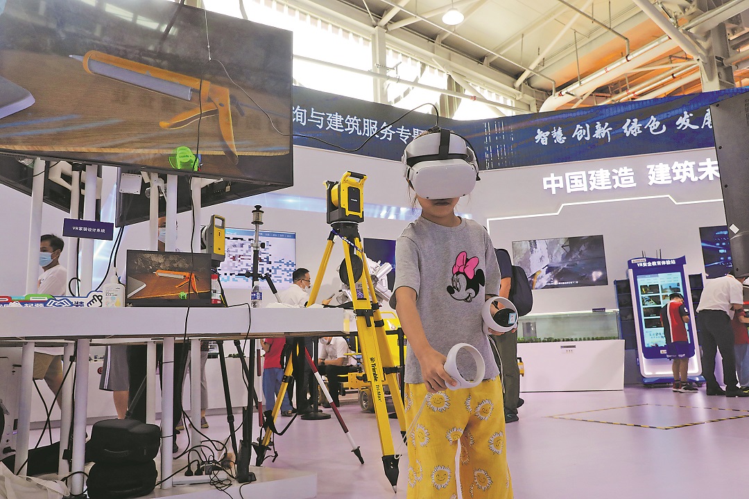 图①:9月5日,一名小观众正通过虚拟现实技术体验房屋装修过程。