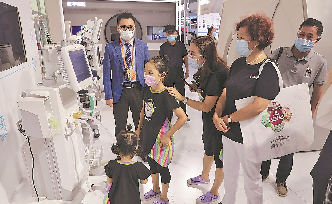 图③:9月5日,健康卫生服务专题展区,观众正在参观已经全面国产化的医疗设备。