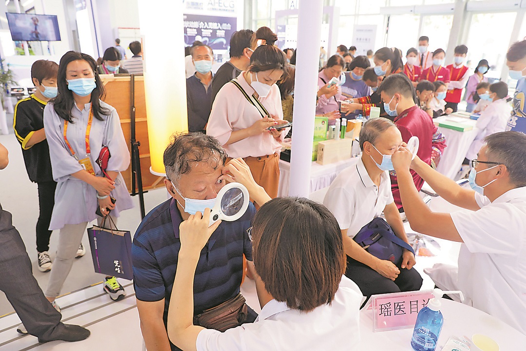 图②:9月6日,观众正在体验瑶医目诊,感受传统医学的魅力。