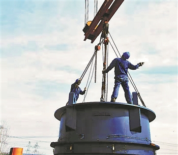 2020年9月,钳工班拍摄检修塔吊回转机构时的场景。