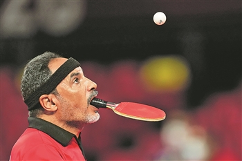 用口咬住球拍,用脚趾夹起乒乓球发球,居然也能和对手打得互有攻守……48岁的埃及无臂选手易卜拉欣·哈马托在东京残奥会上的表演,震惊了世界,也感动了世界。