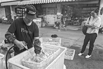 目前,云南的野生菌交易正值旺销季。在国内最大的野生菌交易市场——昆明市木水花野生菌交易市场,顾客络绎不绝,各式各样的菌子整齐地摆放在小篮子里。当顾客购买完野生菌准备提着离开时,洗菌人便会上前询问是否需要帮忙清洗野生菌。