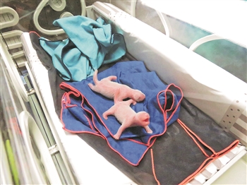 这是9月6日在西班牙马德里拍摄的刚刚出生的两只大熊猫幼崽。