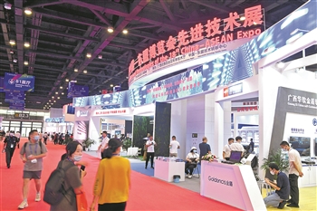 9月10日,第18届中国-东盟博览会在广西南宁开幕。这是参观者在中国-东盟博览会先进技术展区参观。