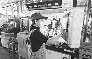 9月10日,江苏省泗洪经济开发区机械制造产业园内一家机械企业的员工正在用技改后的数控机床组织生产。近年来,泗洪县持续加大技改投入,强化项目建设,推动转型升级,致力于提升生产效能、降低碳排放,取得良好成效。