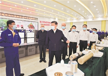 13日上午,习近平首先来到国家能源集团榆林化工有限公司,了解循环经济煤炭综合利用项目规划建设运行情况。在中心控制室,习近平观看项目产品展示,对企业坚持创新发展,坚持安全、稳定、清洁运行的做法表示肯定。随后,习近平到年产40万吨乙二醇项目现场察看,询问煤化工深度发展有关情况,同企业职工代表亲切交流。他强调,榆林是国家重要能源基地,为国家经济社会发展作出了重要贡献。煤炭作为我国主体能源,要按照绿色低碳的发展方向,对标实现碳达峰、碳中和目标任务,立足国情、控制总量、兜住底线,有序减量替代,推进煤炭消费转型升级。煤化工产业潜力巨大、大有前途,要提高煤炭作为化工原料的综合利用效能,促进煤化工产业高端化、多元化、低碳化发展,把加强科技创新作为最紧迫任务,加快关键核心技术攻关,积极发展煤基特种燃料、煤基生物可降解材料等。