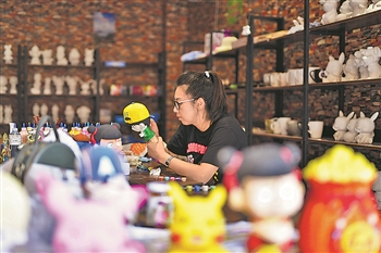 9月15日,河北省迁安市天元谷旅游度假区一家店铺的工作人员在制作文创产品。近年来,该市依托当地旅游资源,将文旅产业与乡村振兴、生态保护、城市建设等工作相结合,打造多种业态融合支撑的全域旅游新格局。新华社记者 牟宇 摄