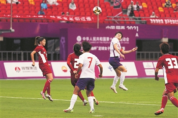 9月16日,在第十四届全运会女足成年组比赛中,陕西队对阵奥运联合队。本报记者 吴凡 摄