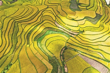 连日来,贵州省黔南布依族苗族自治州龙里县湾滩河镇天气晴好。近日,在贵州省龙里县湾滩河镇羊场社区的稻田,水稻成熟,田野镀金,农民抢收稻谷,一片丰收景象。