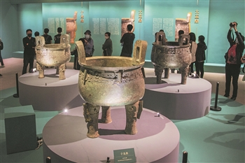 图为观众正在参观大盂鼎、大克鼎、子龙鼎。本报记者 王伟伟 摄