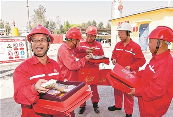 9月15日,中国石化中原油田濮东采油厂庆祖采油管理区党员服务人员到庆4号站为值岗员工送上月饼等慰问品。中秋节前,濮东采油厂组织工作人员深入黄河滩区边远井站,将月饼、水果等慰问品送到员工手中。“我为群众办实事”实践活动开展以来,该厂先后评议、梳理、列单实事项目218件,群众满意度达98%。本报通讯员 赵奕松 李建军 摄