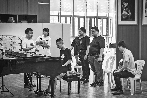 去排练厅,是为了唱歌。每周有两天,由包括陈金灿在内的7名成员组成的国内第一支视障者无伴奏合唱组合会在那里合练。